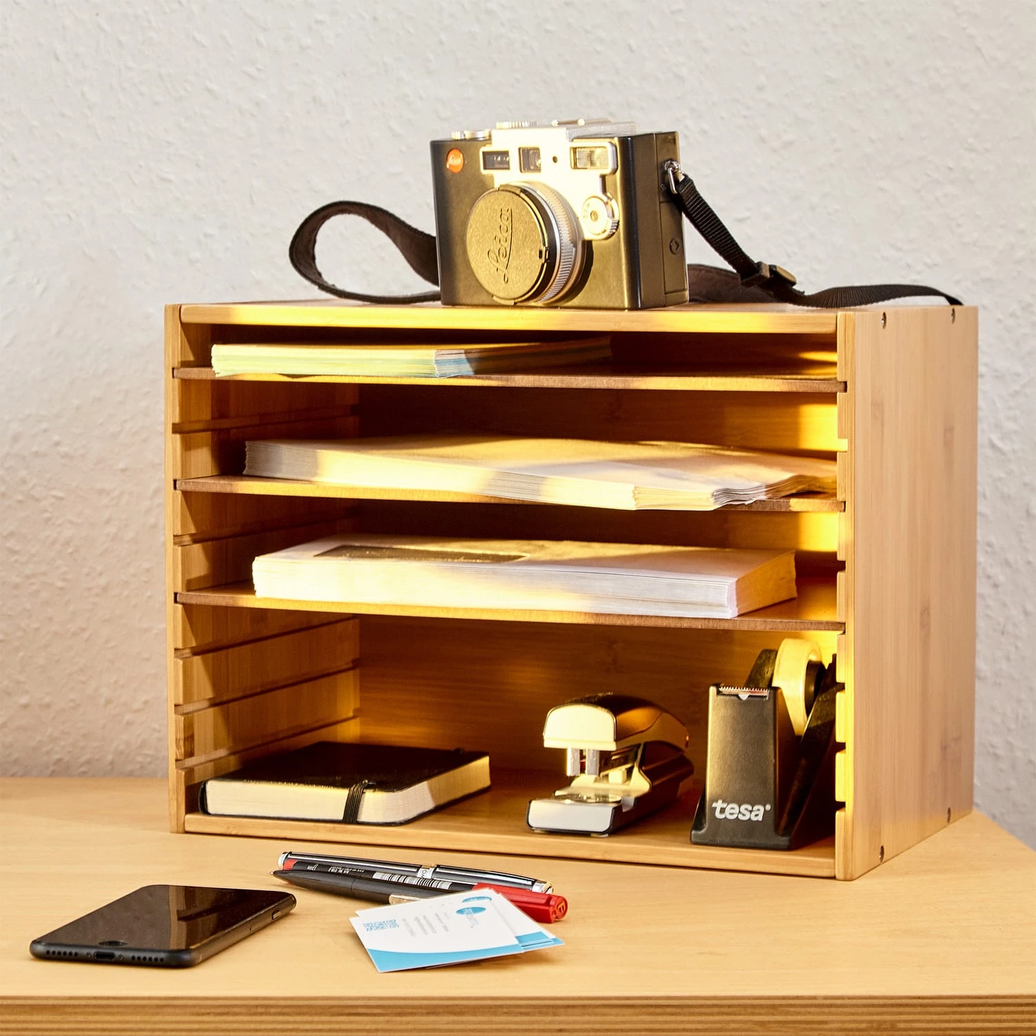 Kompakt im Format, aber stark in der Ordnung: Die Briefbox von blumfeldt bringt System in dein bürokratisches Leben. Die Ablageflächen sind exakt so breit, dass DIN A4 Unterlagen bequem hinein gelegt werden können. Aber auch Briefumschläge, Notizbuch oder Schreibutensilien finden ihren Platz in der Box. Sie passt auf jeden Schreibtisch und ist zudem durch ihr modernes Design aus echtem Bambus ein tolles Interieur.