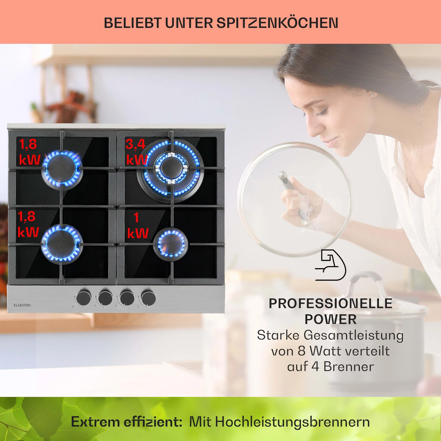 Entfache ein neues Feuer für effizientes Kochen bei niedrigeren Kosten mit allen Vorteilen eines Gasherds: Das Alchemist 4 Zonen Gaskochfeld von Klarstein überzeugt nicht nur Hobbyköche.