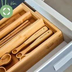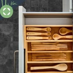 Modernes Schubladeninlet mit Anpassungsfähigkeit: Der Klarstein Besteckkasten aus nachhaltigem Bambus.