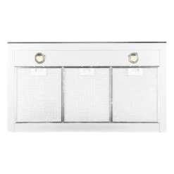 Das elegante Produktdesign setzt sich ernsthaft mit dem innenarchitektonischen Ansatz amerikanischer Küchen und zeitgenössischen Design-Vorstellungen auseinander. Die Vorderseite der Dunstabzugshaube ziert eine Frontblende aus schwarzem Sicherheitsglas, außerdem verfügt sie über eine blau beleuchtete Armatur mit berührungsempfindlicher Touch-Bediensektion. Auf beiden Seiten finden sich zudem LED-Strahler, die einen optimalen Einblick auf das Kochgeschehen geben.