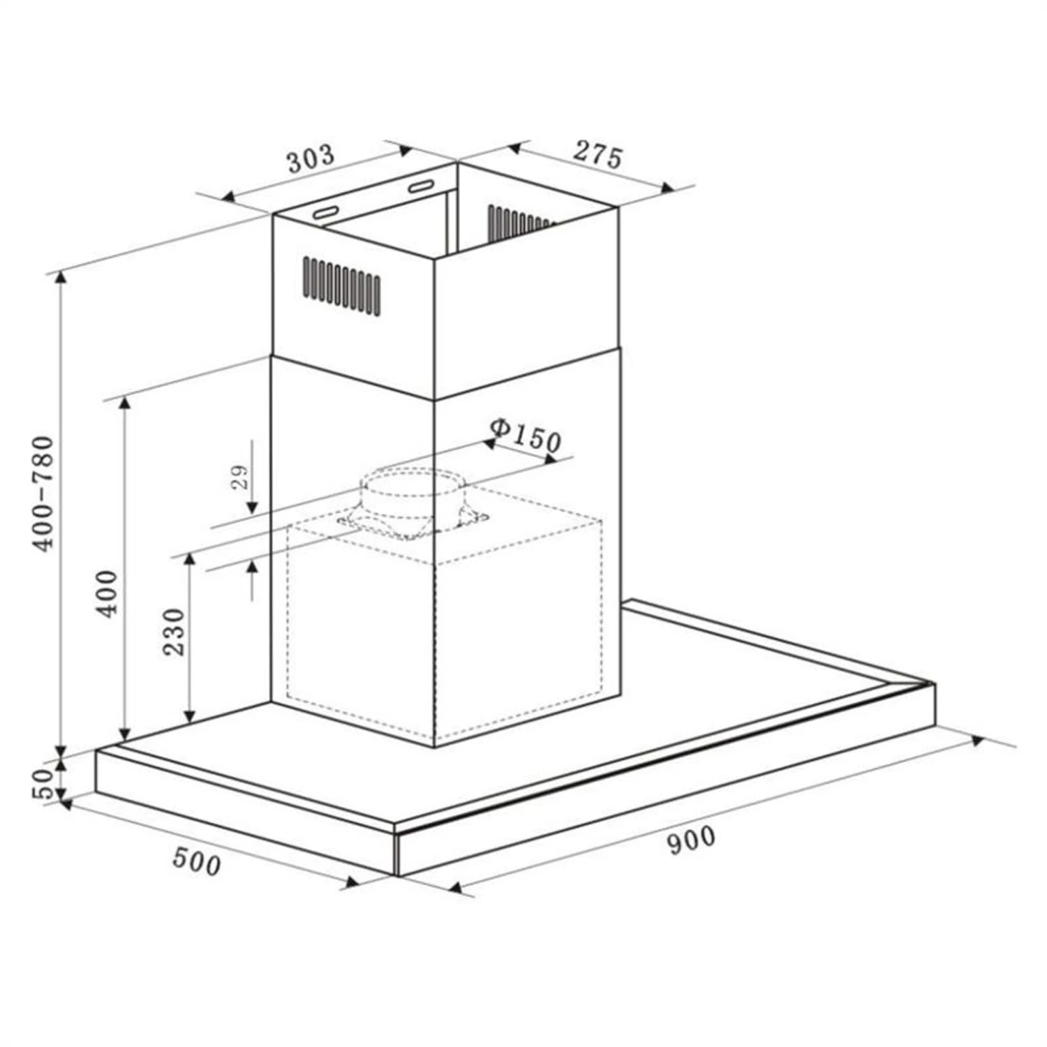 - Maße Dunstabzugshaube: ca. 90 x 45-85 x 50 cm (BxHxT)
