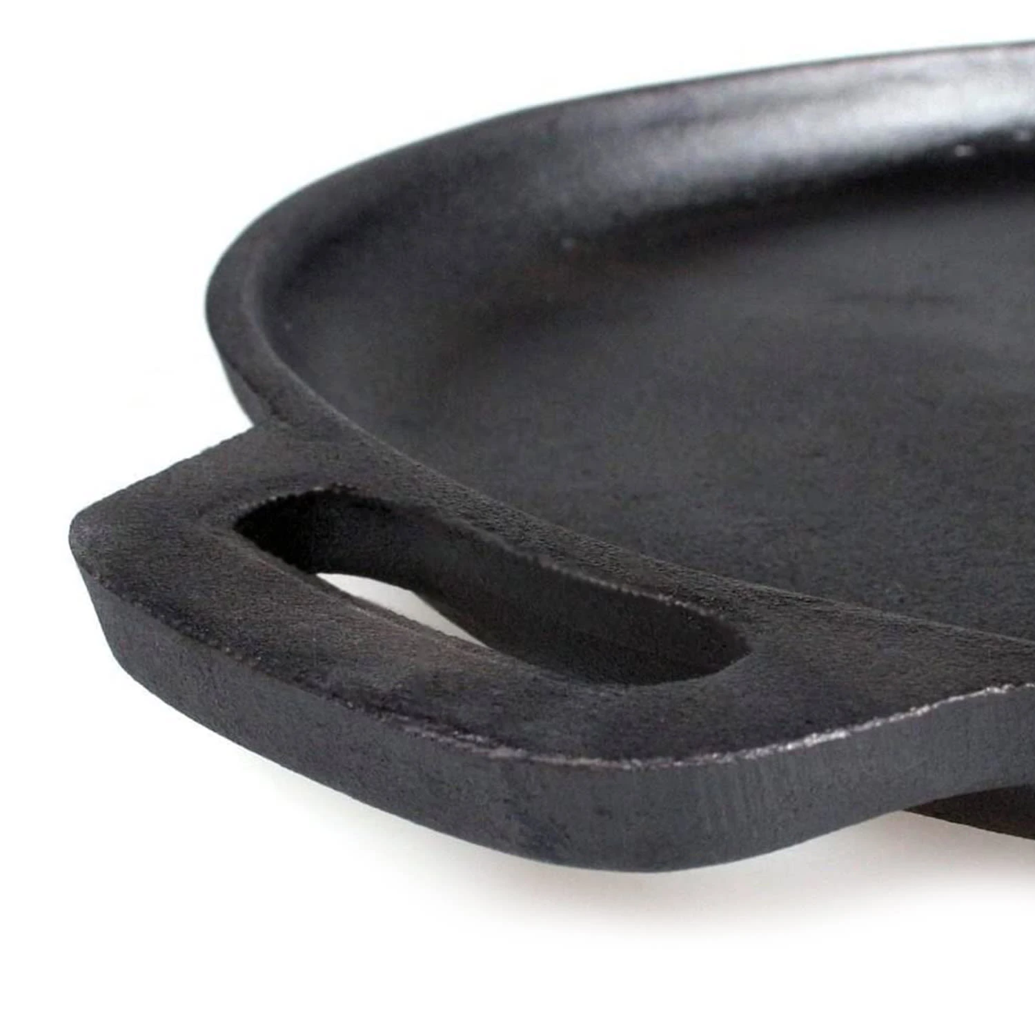 Die Canadienne Grillpfanne von Klarstein ist eine runde Grillplatte mit einem kleinen, 3 cm hohen, Rand. Mit ihren zwei Griffen und 35 cm Durchmesser ähnelt sie zwar optisch einer Bratpfanne, zählt aber ursprünglich zum südamerikanischen Kochgeschirr „Budare“. Mit ihr kannst du alle typischen mexikanischen Gerichte wie Tortillas, Fajita-Gemüse, Arepas, Quesadillas und vieles mehr zubereiten. Auf der runden Guss-Pfanne lassen sich auch Nüsse, Gewürze und Kaffeebohnen rösten. Aufgrund der glatten und flachen Pfannenform eignet sie sich zudem ideal als universelle Grillplatte zum Anbraten von Fleisch und zum Zubereiten anderer Speisen bis hin zum Einsatz als Pizzapfanne.