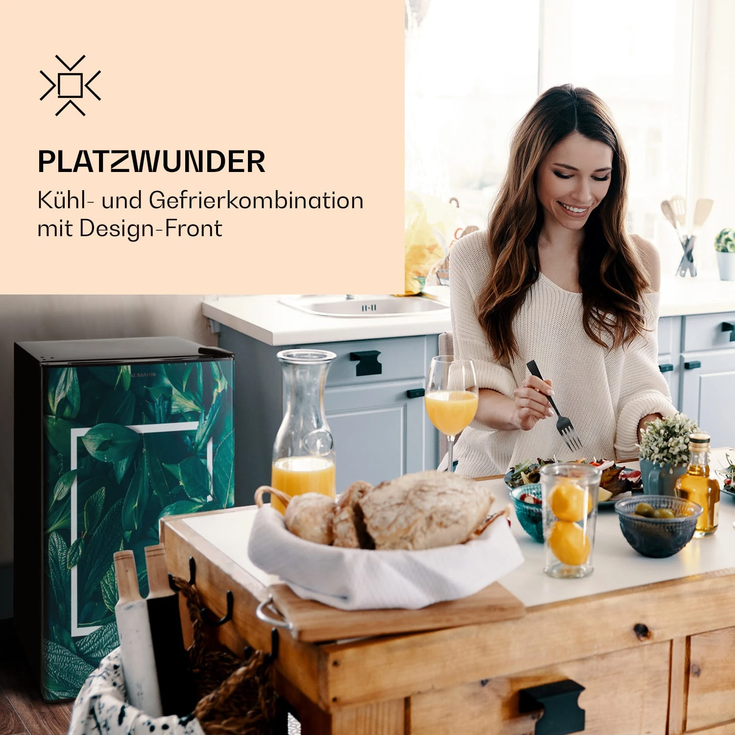 Kombinierte Frische für dein Zuhause. Die Klarstein CoolArt Kühl- und Gefrierkombination vereint den Platzvorteil eines Kühlschranks mit einem 9-Liter-Eisfach und einer Design-Front, die Farbe in deine Küche bringt. Damit ist sie mit ihren 79 Litern Frischevolumen der ideale Kühlschrank für Singles, in Gästezimmern oder im Gartenhäuschen. Dank ihres geräuscharmen Betriebs mit nur 41 dB stört sie weder deine Gedanken, noch deinen Schlaf.