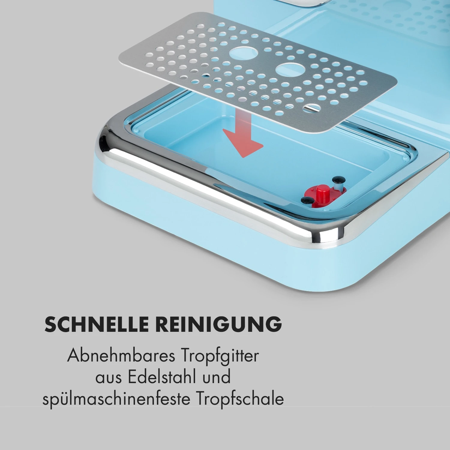 Mit ihrem außergewöhnlichen Retro-Design wird die Espressionata Gusto Espressomaschine von Klarstein zu einem Blickfang in jeder Küche und begeistert immer wieder mit einer frisch zubereiteten Kaffeespezialität.