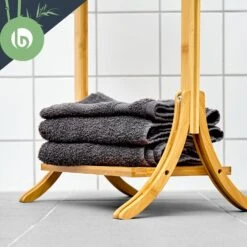 Wer kennt das nicht? Das Handtuch ist im Weg, denn es hängt über Badewannenrand oder Duschkabine. Es stört auf der Heizung oder kann nicht richtig trocknen, da es platzsparend aufgehängt werden muss. Damit ist nun Schluss, denn dank dem blumfeldt Handtuchständer kannst du deine Handtücher perfekt ausbreiten und trocknen. Dazu ist der Handtuchhalter eine pure Augenweide: kantig konstruiert und aus echtem Bambus hergestellt wirkt er wie ein Designerstück fürs Badezimmer. Besonders schön sind dabei die lebendig geschwungenen Füße, welche dem Ständer einen sicheren Stand verschaffen. Optisch setzen sie einen interessanten Kontrast zur Geradlinigkeit des Wäscheständers.