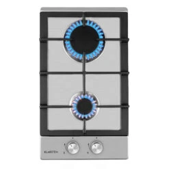 Auf dem platzsparenden Kochfeld befinden sich zwei hochwertige Sabaf-Brenner, die mit einer Leistung von 3 kW und 1 kW ordentlich einheizen. Dabei ist die Bedienung dank der selbsterklärenden Symbole an den großen Drehknöpfen absolut intuitiv, die Hitzezufuhr kann während des Kochvorgangs immer wieder direkt angepasst werden. Zusätzliches Feuer zum Entzünden ist nicht nötig: Die Gasflamme wird einfach per SnapJetIgnition entfacht. Die beiden Brenner verteilen die Hitze gleichmäßig in der Mitte und an den Rändern der Töpfe oder Pfannen, alles wird perfekt und bestmöglich gegart. Das Kreuz aus massivem Gusseisen ist für beinahe alle Arten von Kochgeschirr geeignet und sitzt passgenau und kippsicher über den Flammen.