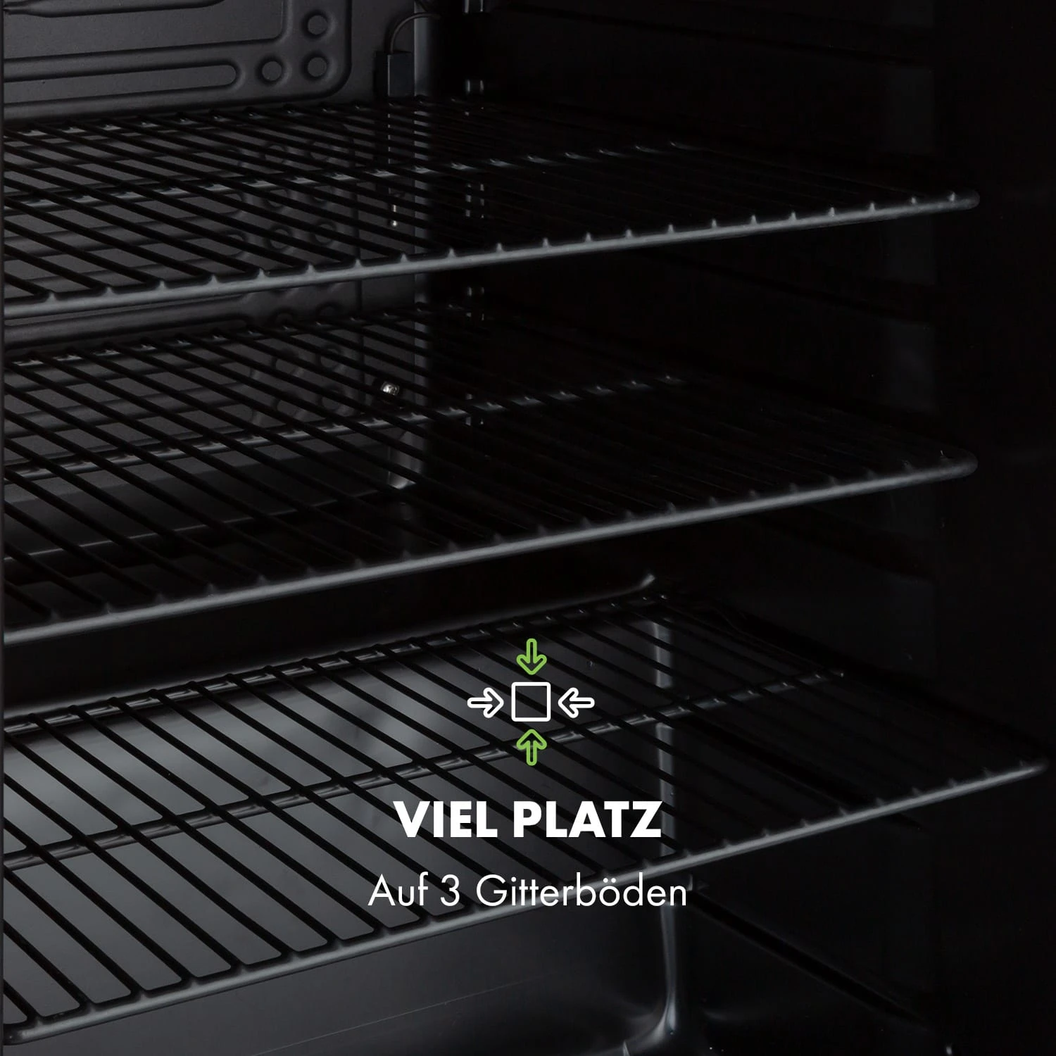 Der stylische PopLife Kühlschrank hält immer eine gekühlte Überraschung in seinem 70 Liter fassenden Innenraum bereit. Auf 3 verstellbaren Gitterböden finden Lebensmittel und Getränke reichlich Platz. Via mechanischem Drehregler im Innern lässt sich die Temperatur zwischen 0 und 10 °C einstellen. Die oberseitige Lampe und die doppelt verglaste Tür sorgen für die nötige Übersicht.