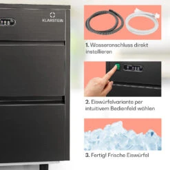 Dank ihres schlichten Edelstahlgehäuses integriert sich die Klarstein Powericer XL Eiswürfelmaschine problemlos in Bar- oder Küchenbereiche.