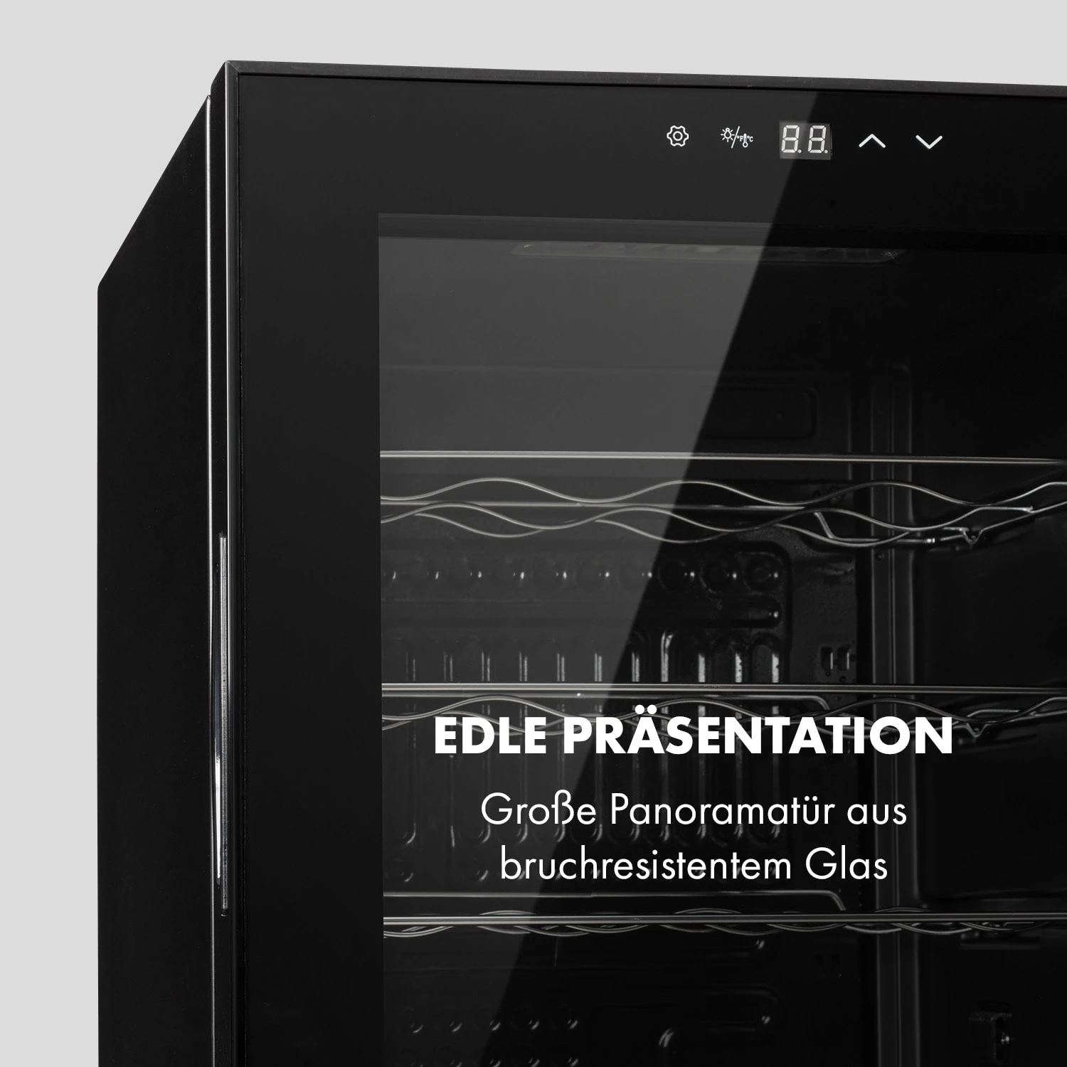 Aus Liebe zum Wein: Der Klarstein Shiraz 28 Uno Weinkühlschrank sorgt für besten Weingenuss, indem er edlen Tropfen die richtige Trinktemperatur verschafft. Dabei glänzt er mit seinem kompakten Design und setzt den Wein gekonnt in Szene – insbesondere durch seine Fronttür aus Sicherheitsglas. So kannst du insgesamt 28 Flaschen Wein perfekt präsentieren und dank der Innenbeleuchtung atmosphärisch inszenieren.