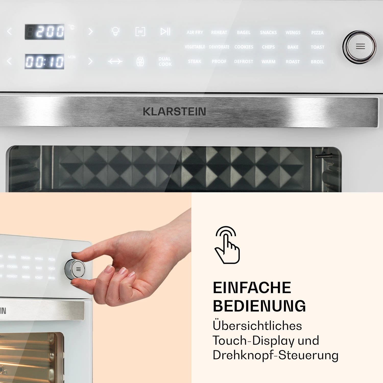 - 18 wählbare Programme sowie manuelle Garzeit- und Temperatureinstellung
