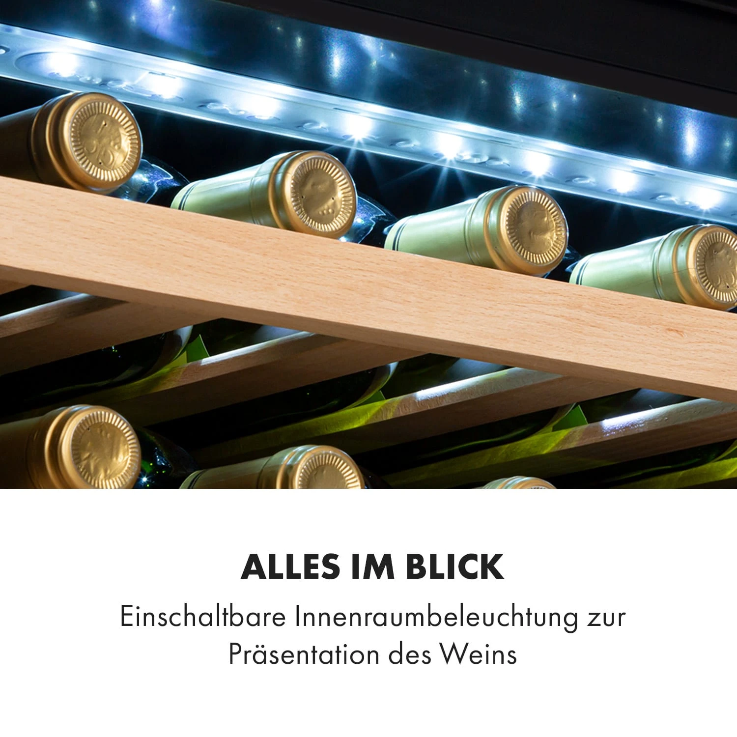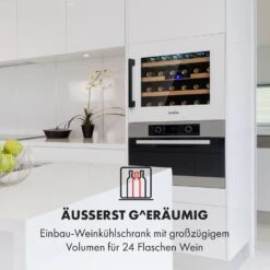 Dank des Klarstein Vinsider 24 Built-In Uno Einbau-Weinkühlschranks kannst du dem Wein die idealen Bedingungen für sein volles Aroma und die perfekte Trinktemperatur bieten. Alles, was du tun musst, ist die elegante Fronttür mit dem abgedunkelten Panoramafenster zu öffnen und den Wein auf einem der 3 Holzböden zu positionieren. Dann die gewünschte Kühltemperatur einstellen und dein Weinkühlschrank von Klarstein kümmert sich um das „Weinwohlfühlklima“. Wenn du und deine Gäste den Wein genießen möchten, ist er wohltemperiert: zu jeder Zeit und direkt in deiner Nähe.
